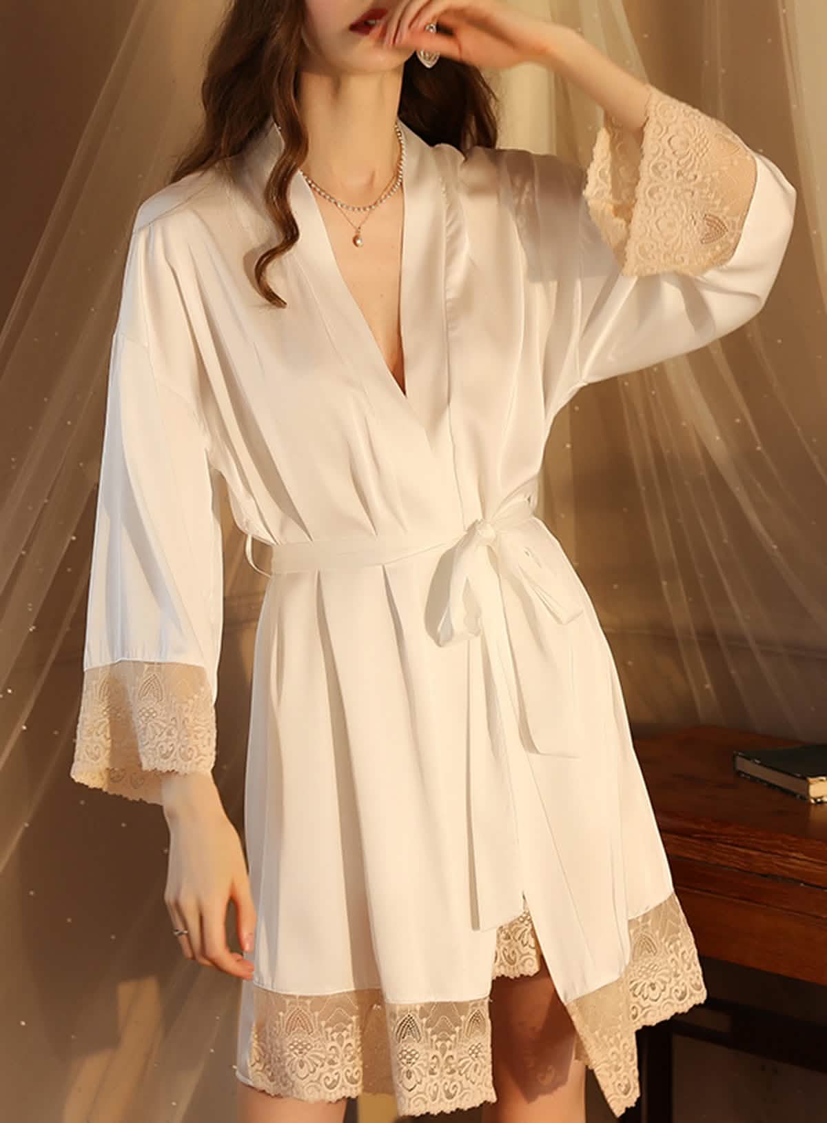 العنوان: رداء عاجي متألق - أناقة بيضاء رائعة مع لمسات من الدانتيل البيج الرقيق