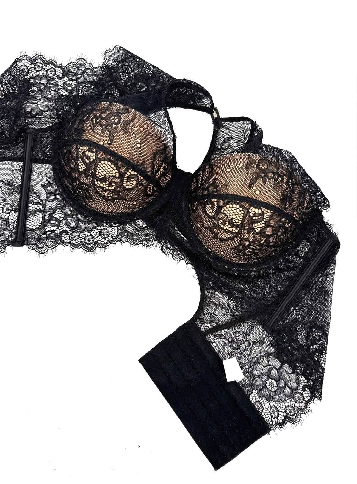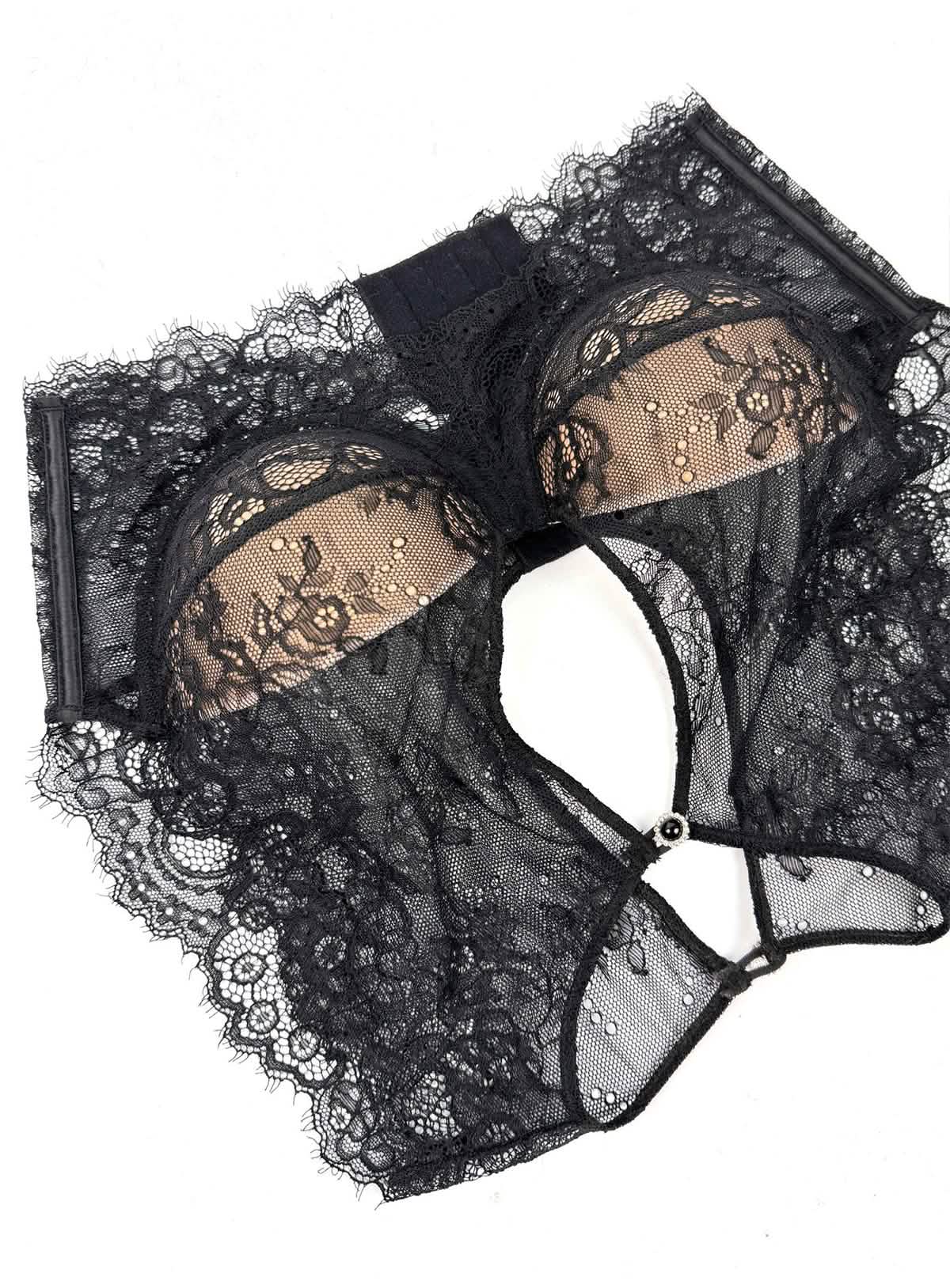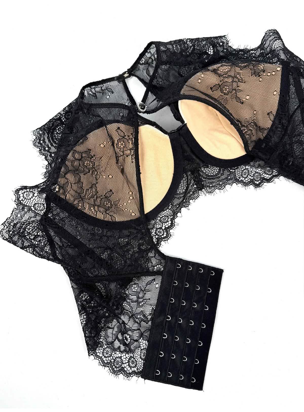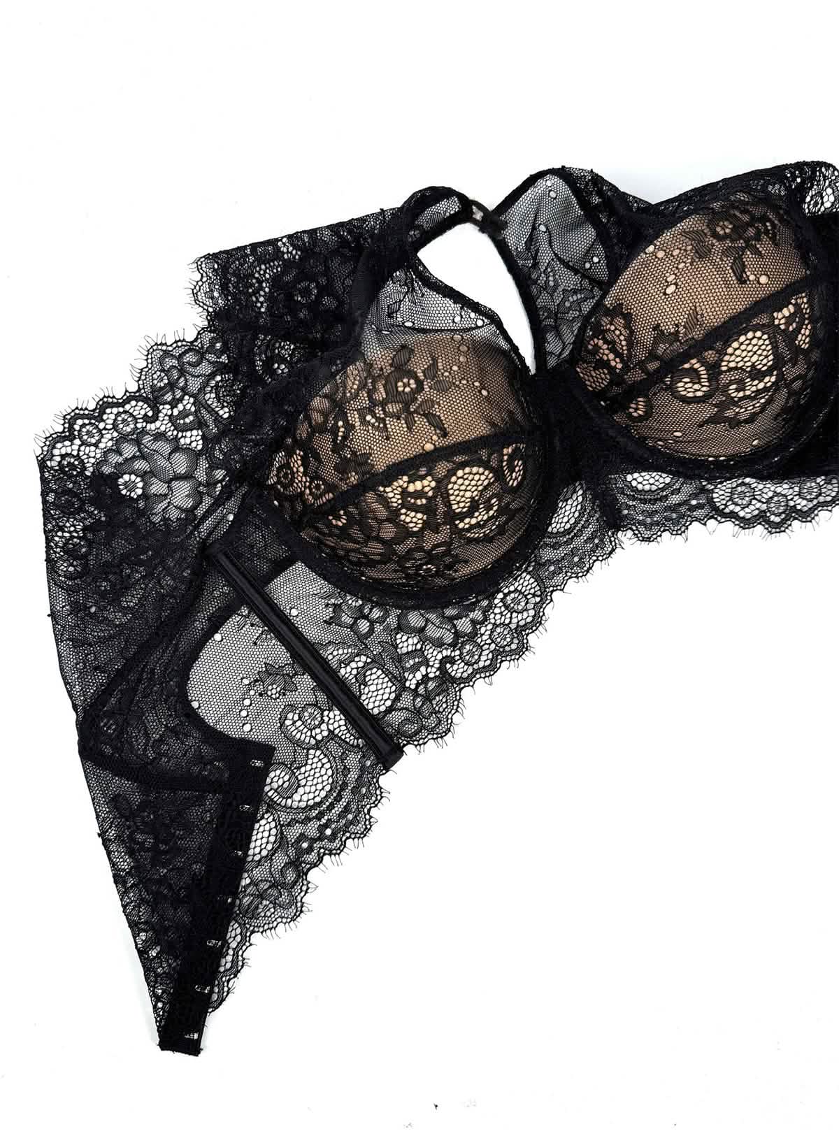 Delicate Floral Lace: Sheer lace cups featuring layered botanical motifs for an alluring, semi-transparent effect.