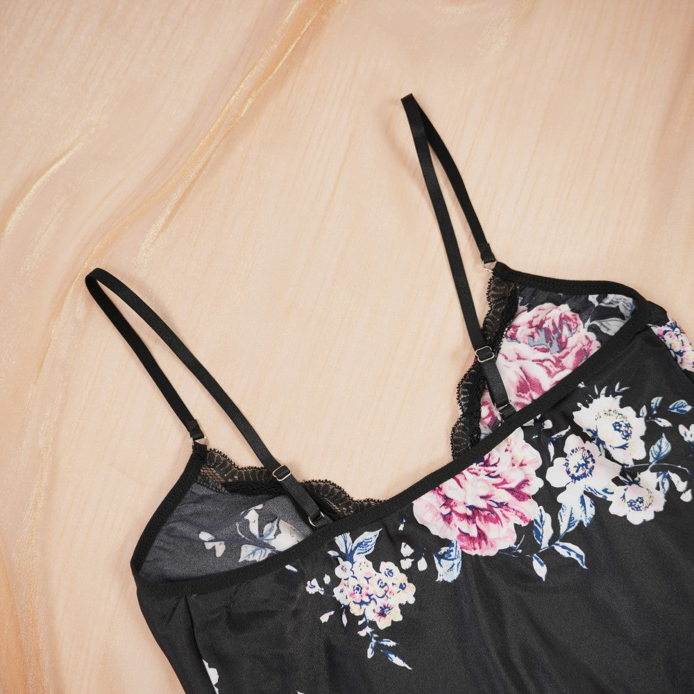 Black Lace Embroidery Seduction High Slit Suspender Panty Set