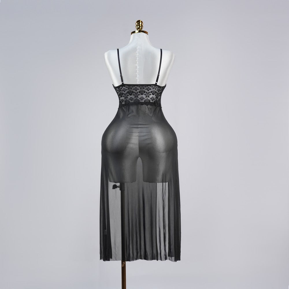 Crafted with delicate lace featuring intricate floral patterns, this sheer dress gracefully accentuates your curves while hinting at alluring skin.