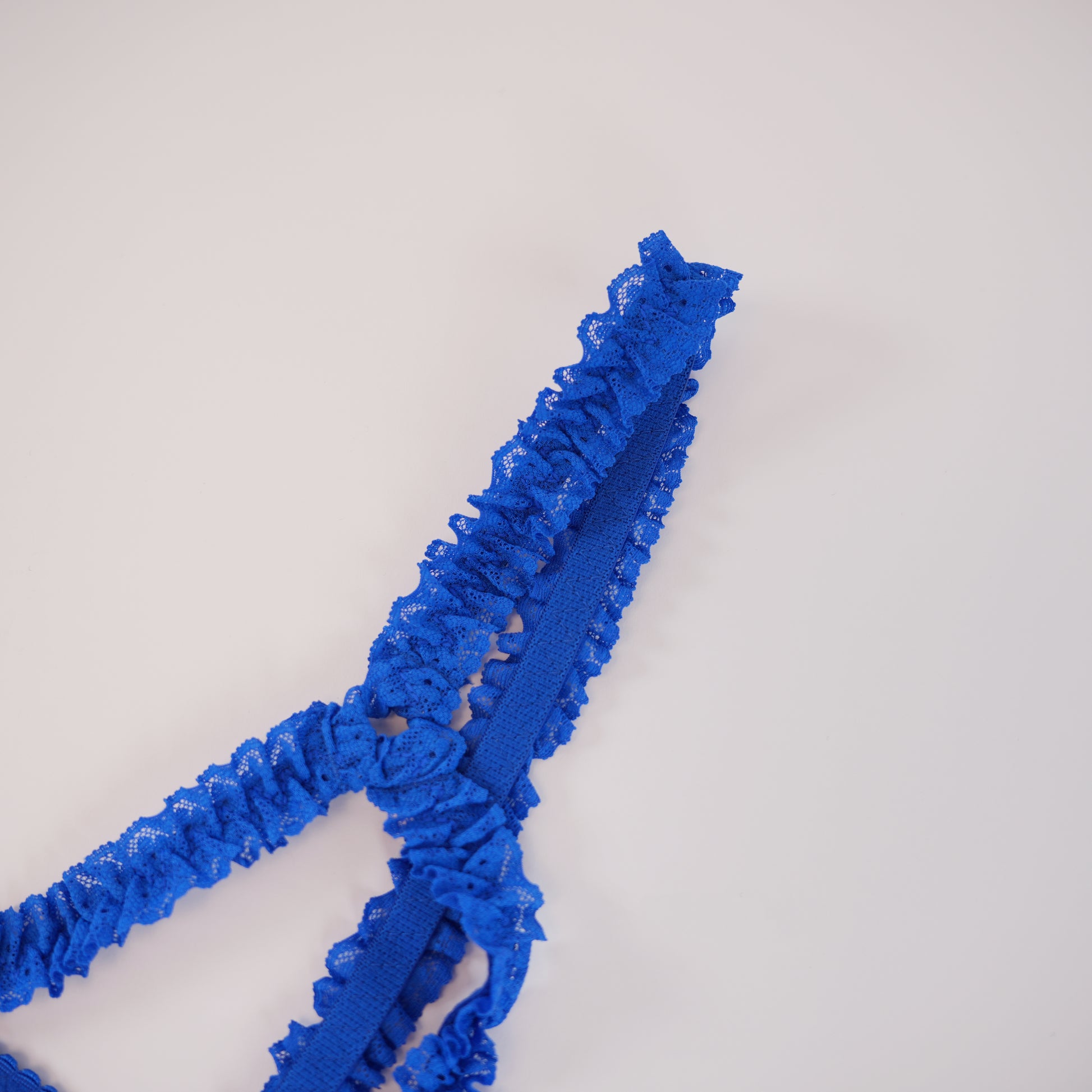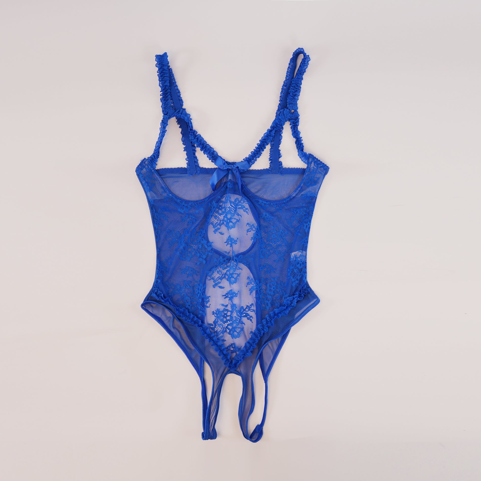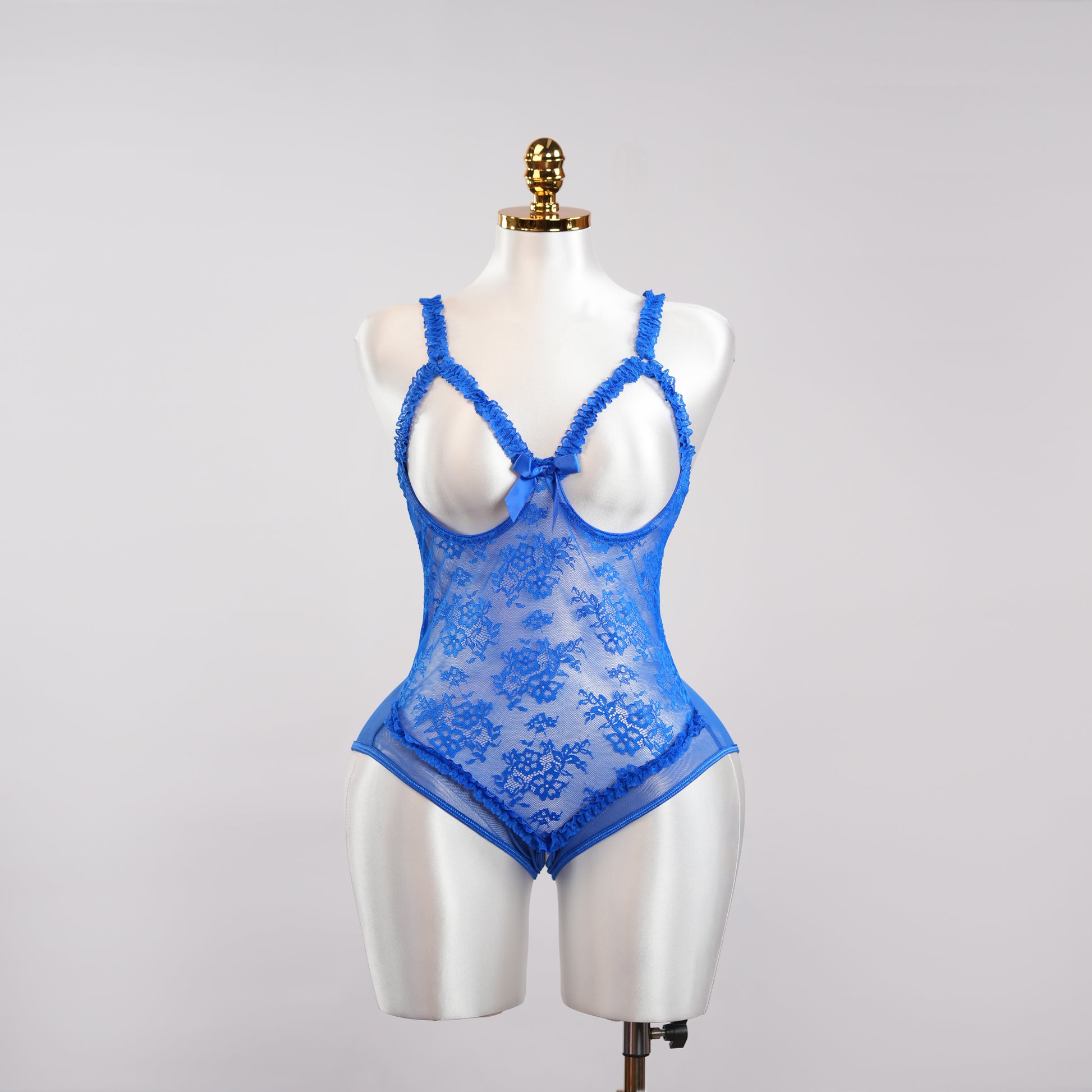 The deep and elegant blue color creates a mysterious and alluring atmosphere, the lace patterns are delicate and intricate, like flowers and vines entwining, showcasing superb craftsmanship and adding visual beauty and a smooth touch.