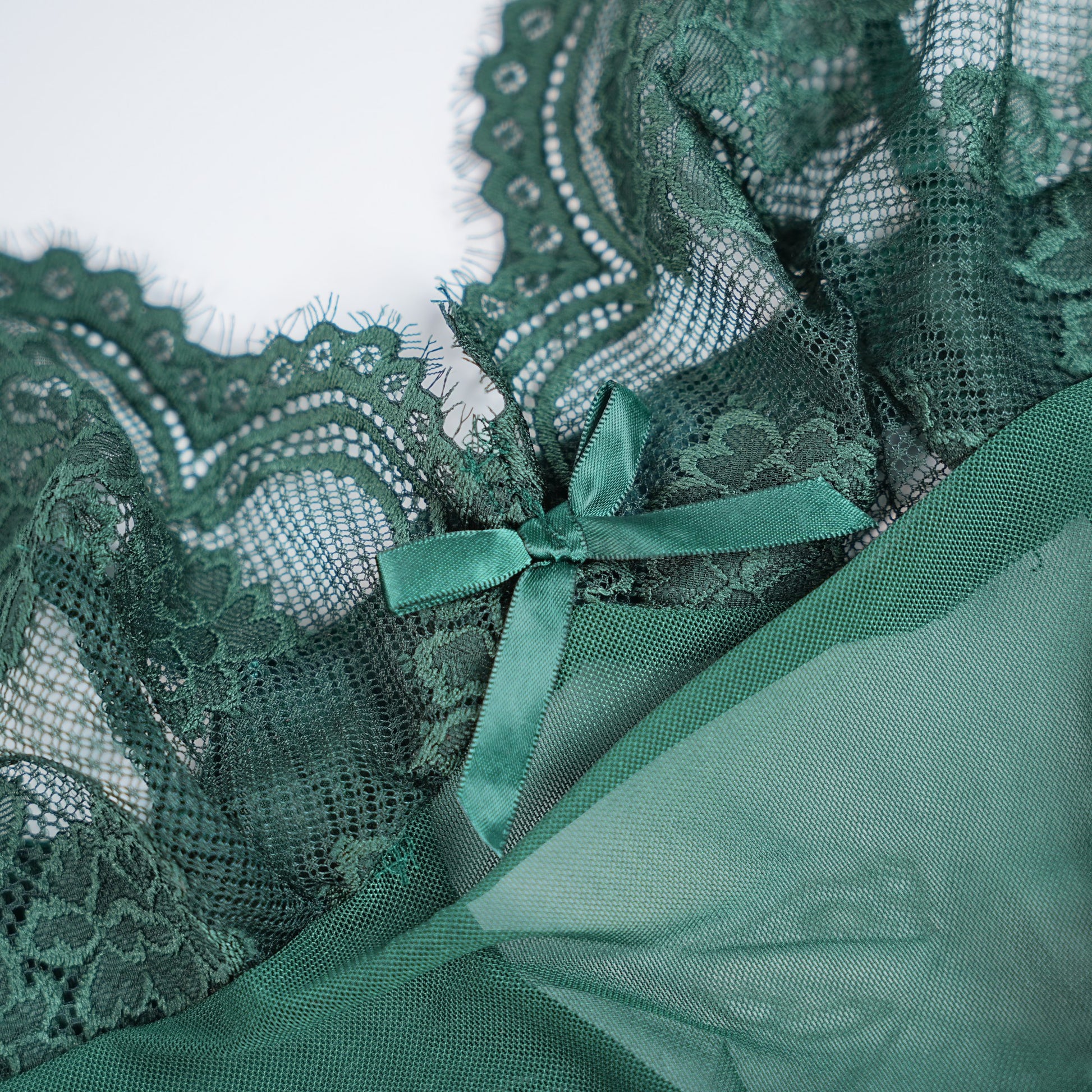 Jumpsuit with floral lace fabric spliced with fine mesh gauze. There are buckle adjusters on the back to adjust the size, which can flatter the figure.The crotch part is designed with a slit.