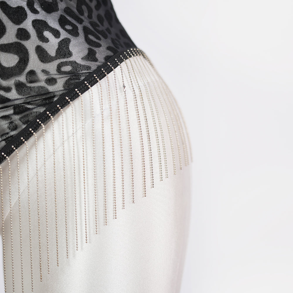 Sheer leopard mesh with heart-shaped cutout and fringe accents—sculpting, bold, and irresistibly sexy.