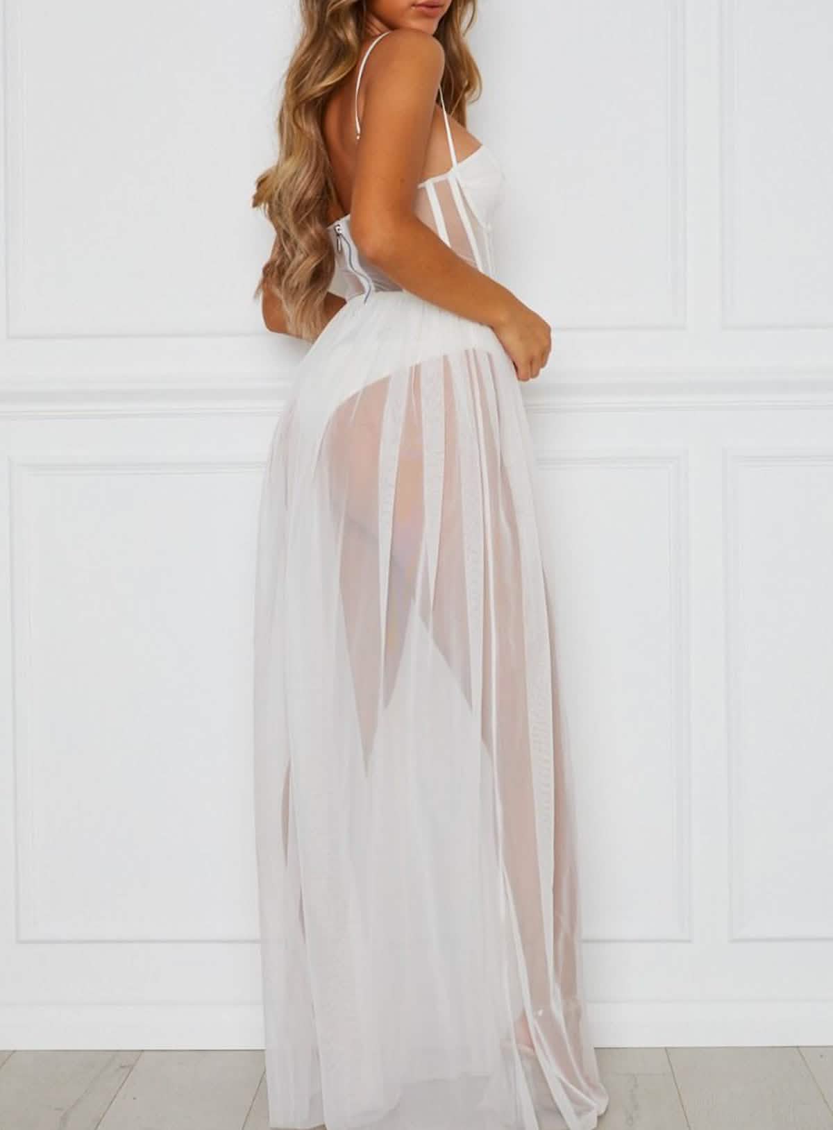 Title: Vesper �Elegant Sheer Maxi Dress with High Slit