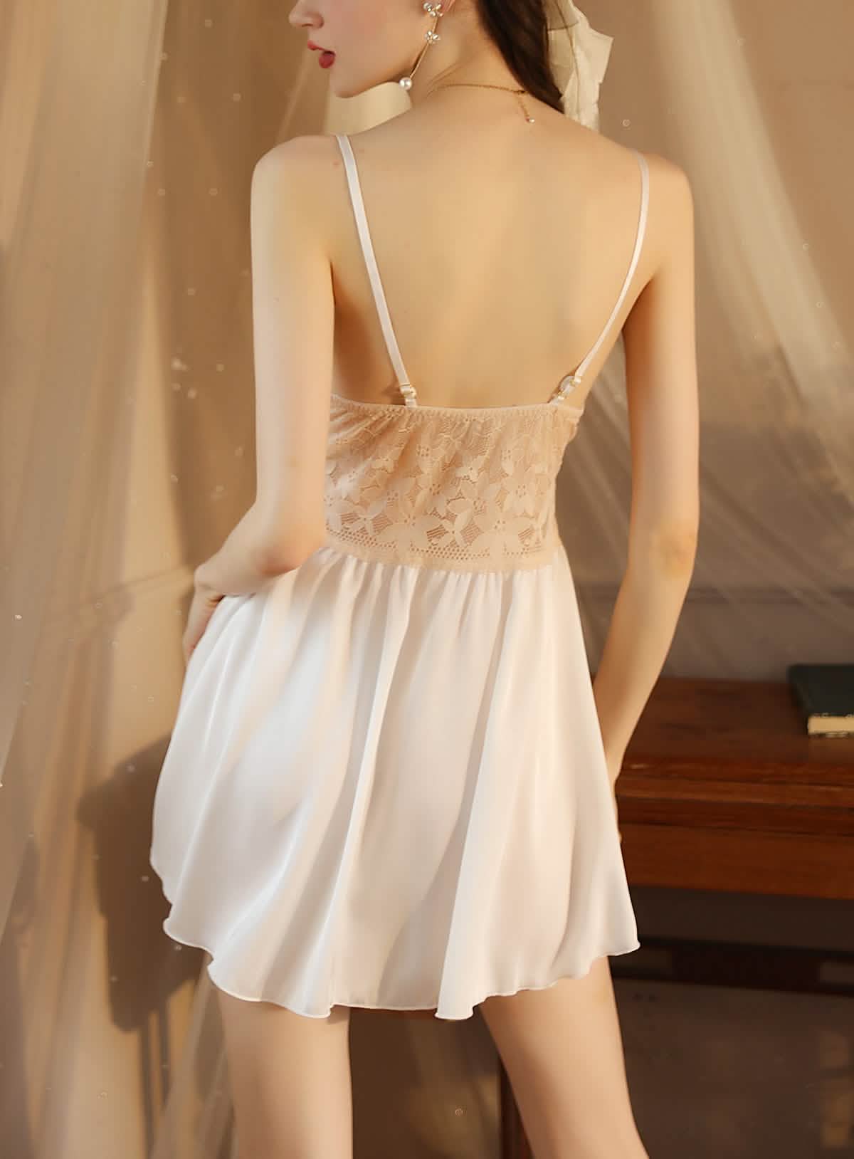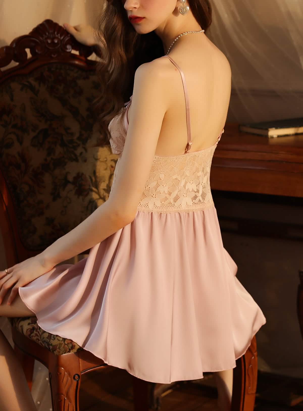 A retro lace patchwork silk camisole slip dress with delicate and fine fabric.