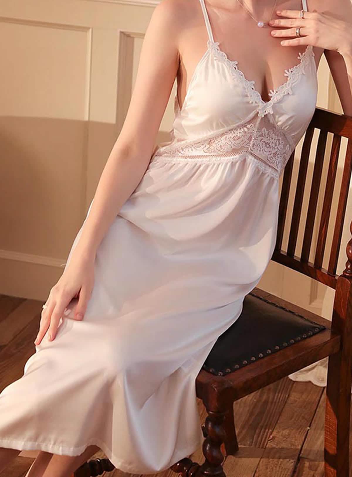 Moon Whisper White Nightgown �Delicate Lace Details & Slim Straps with a Gracefully Flowing Silhouette for an Enchanting Home Aura